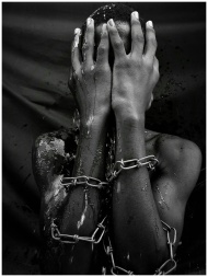 Striking black and white image of a person in chains, evoking emotion and depth.