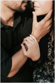 Close-up of a loving couple sharing a gentle and intimate moment in soft light.