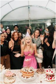 A group of friends joyfully celebrating a birthday