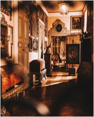 A luxurious vintage interior showcasing art, ornat