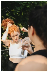 Two women staying hydrated while engaging in outdo