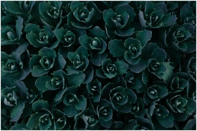 A vivid close-up of dark green succulent leaves forming a natural pattern.
