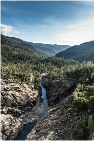 Explore the stunning landscape of Groveland, CA with rocky valleys and a flowing river under a clear sky.