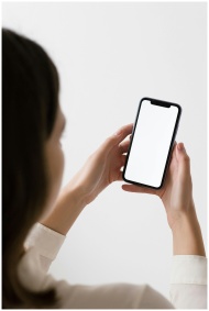 Female hand holding a smartphone with a blank screen suitable for app or website mockup.