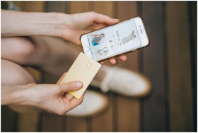 Hands holding smartphone and credit card for onlin