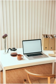 A clean and minimalistic office setup with a lapto