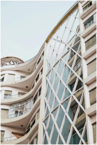 Elegant modern building with a unique curved glass