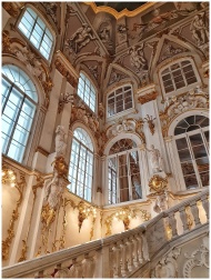 Luxurious Baroque interior with gilded details in Russia's Winter Palace, showcasing ornate design.