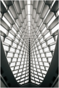 Modern architectural design with geometric patterns inside Milwaukee Art Museum.