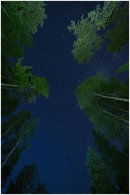 A breathtaking view of stars shining above a dense forest at night.
