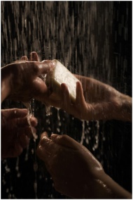 Artistic shot focusing on hands under streaming wa