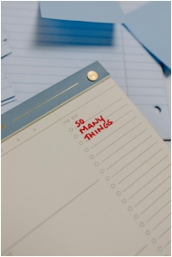 A planner with 'So Many Things' written, surrounded by loose notes.