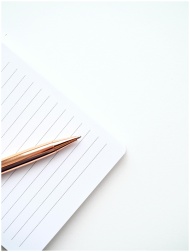 A close-up shot of a gold pen on a lined notepad w