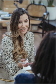 Two women engaging in a friendly discussion at a m