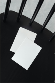 Two blank sheets of paper rest on a black chair pr