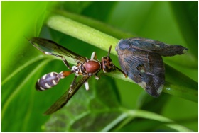 Macro image of insects on a green plant stem outdo