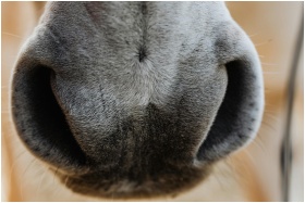 Close-up photo of a horse's muzzle and nostrils, s