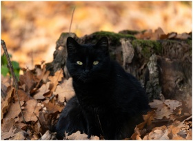 Black Cat Resting Autumn