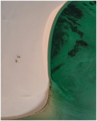 Stunning aerial shot of the unique sand dunes blending with a vivid turquoise lagoon in Maranhão, Brazil.