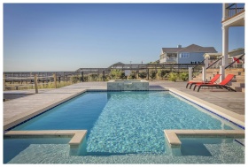 Modern villa pool area with stunning sea and mount