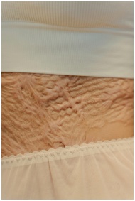Detailed close-up image showcasing natural texture of stretch marks on skin.
