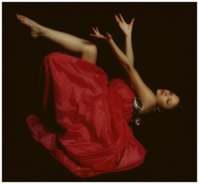Captivating flamenco dancer in a vibrant red dress performing in Kyiv.