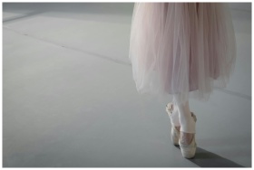 Close-up of a ballerina on pointe highlighting grace and elegance in a dance studio.