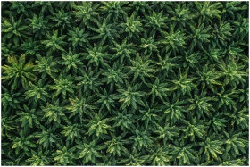 A mesmerizing aerial shot showcasing dense palm trees from above, highlighting natural patterns and textures.