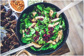 Healthy and vibrant spinach salad with grilled chi