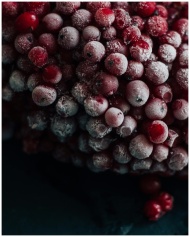 Frosted red berries piled high, showcasing freshness and natural vibrancy.