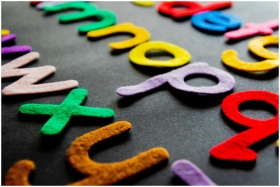 Colorful felt alphabet letters displayed on a dark background.