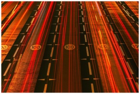 Long exposure night shot of busy expressway in Dub