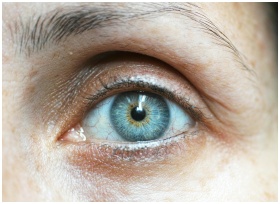 Detailed close-up image of a woman's blue eye reve