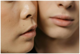 Close-up of two women's faces highlighting skin texture and natural beauty.