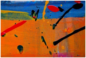 Colorful abstract painting with bold strokes and vibrant hues on canvas.