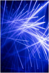 Vibrant blue laser light beams creating an abstract and energetic atmosphere.