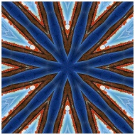 Vibrant and dynamic abstract kaleidoscope pattern with blue and orange hues, perfect for creative design.