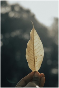 A macro shot featuring a hand holding a fragile leaf against a bokeh background, capturing the essence of nature