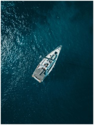 A stunning aerial shot of a sailboat cruising the