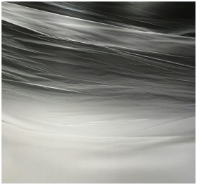 Mesmerizing abstract texture featuring layers of translucent plastic in monochrome tones.