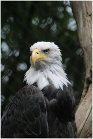 Close-up of a bald eagle with striking plumage, sy