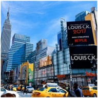 A vibrant scene featuring New York City's skyscrap