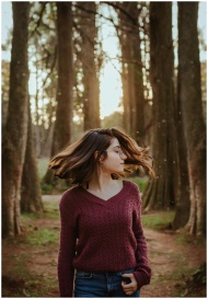 A young woman twirls in a forest, capturing the essence of nature and freedom.