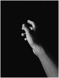 A solitary hand reaching out against a black backg