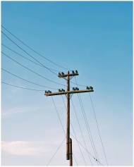 Electrical pole with power lines under a clear blu