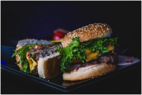 Delicious cheeseburger with lettuce and tomato ser