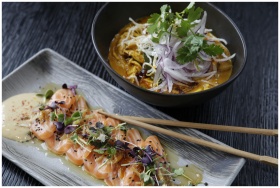 Delicious Japanese sashimi and ramen beautifully presented, showcasing authentic Asian flavors.