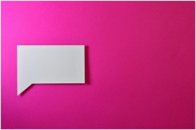 A minimalistic white paper speech bubble on a vibrant pink background, perfect for design projects.