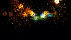 Vibrant bokeh lights on a rainy window, creating a