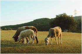 A picturesque rural landscape featuring sheep graz